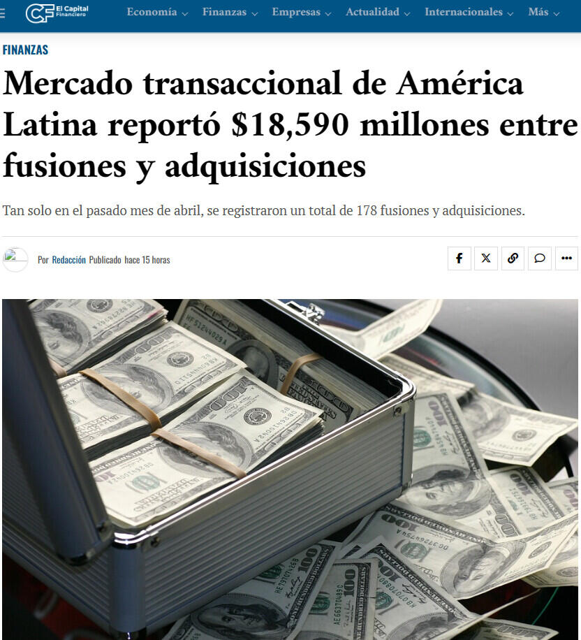 Mercado transaccional de América Latina reportó $18,590 millones entre fusiones y adquisiciones