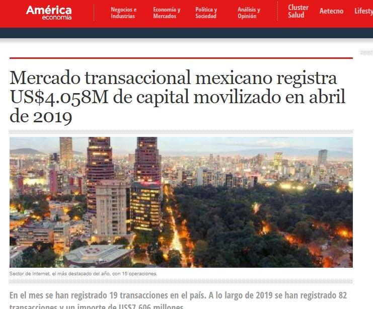 Mercado transaccional mexicano registra US$4.058M de capital movilizado en abril de 2019
