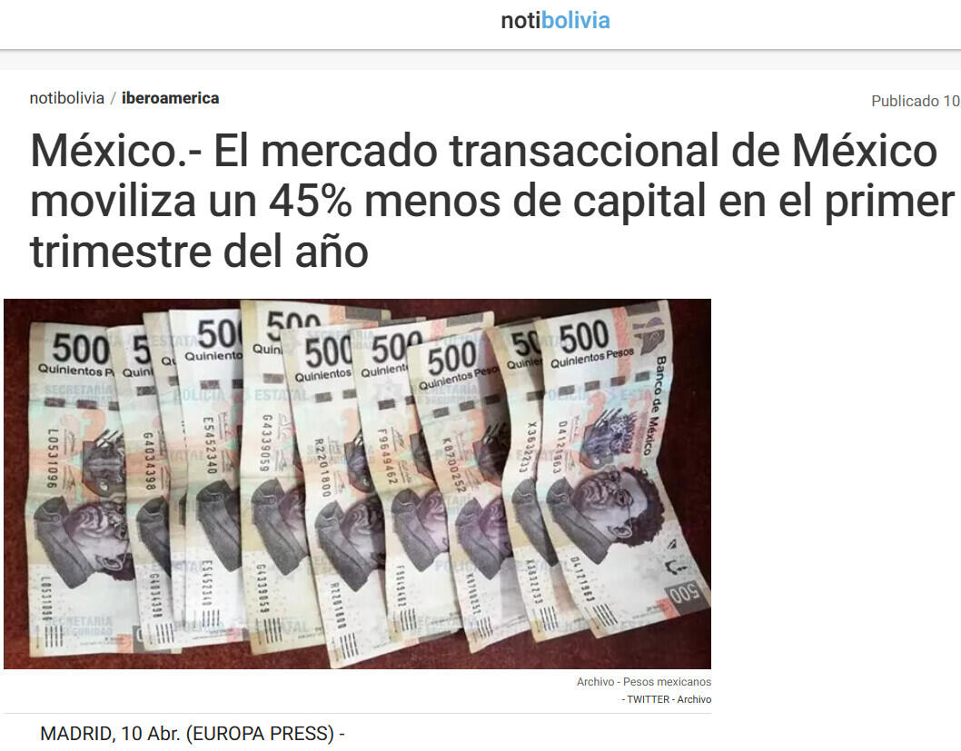 México.- El mercado transaccional de México moviliza un 45% menos de capital en el primer trimestre del año