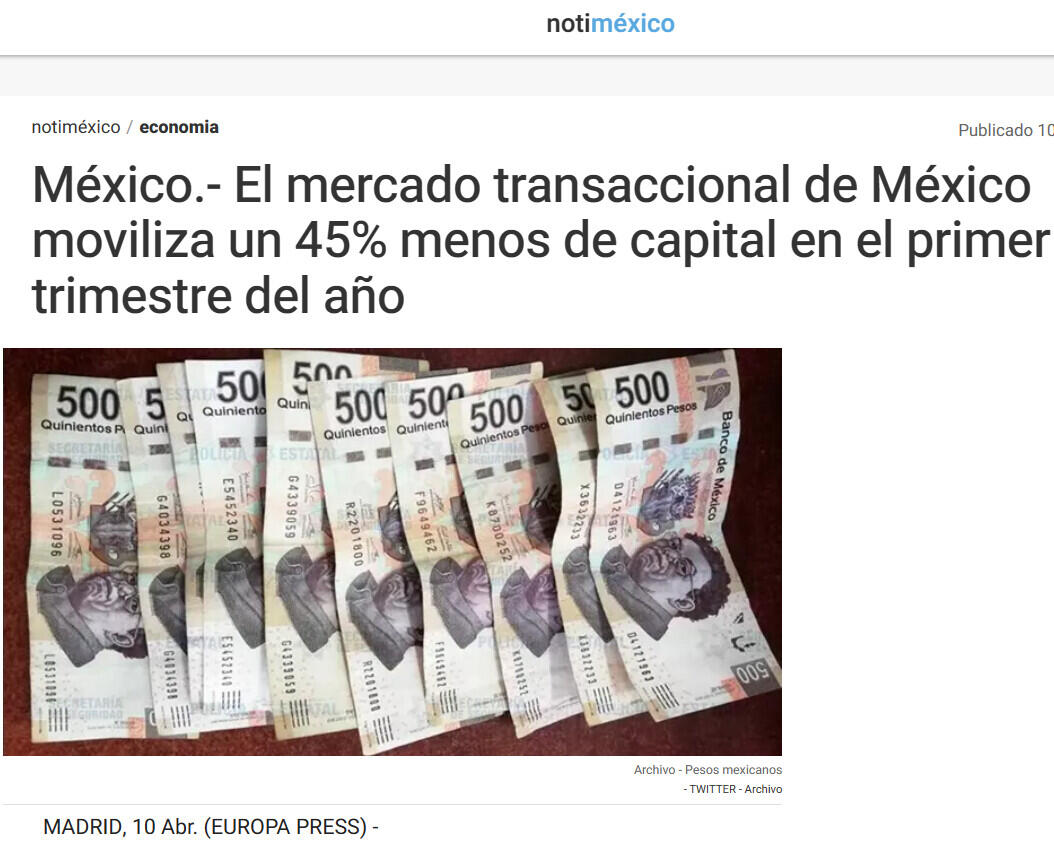 México.- El mercado transaccional de México moviliza un 45% menos de capital en el primer trimestre del año