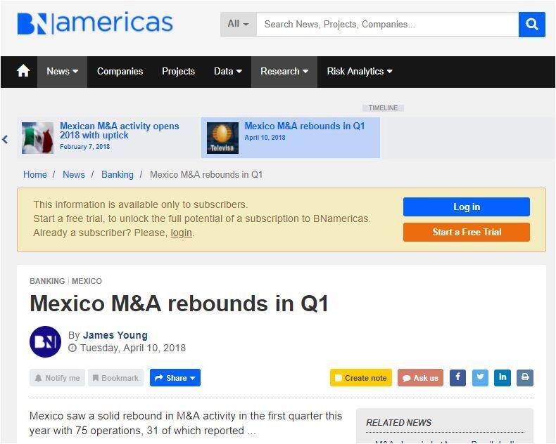 Mexico saw a solid rebound in M&A activity in the first quarter this year with 75 operations, 31 of which reported...