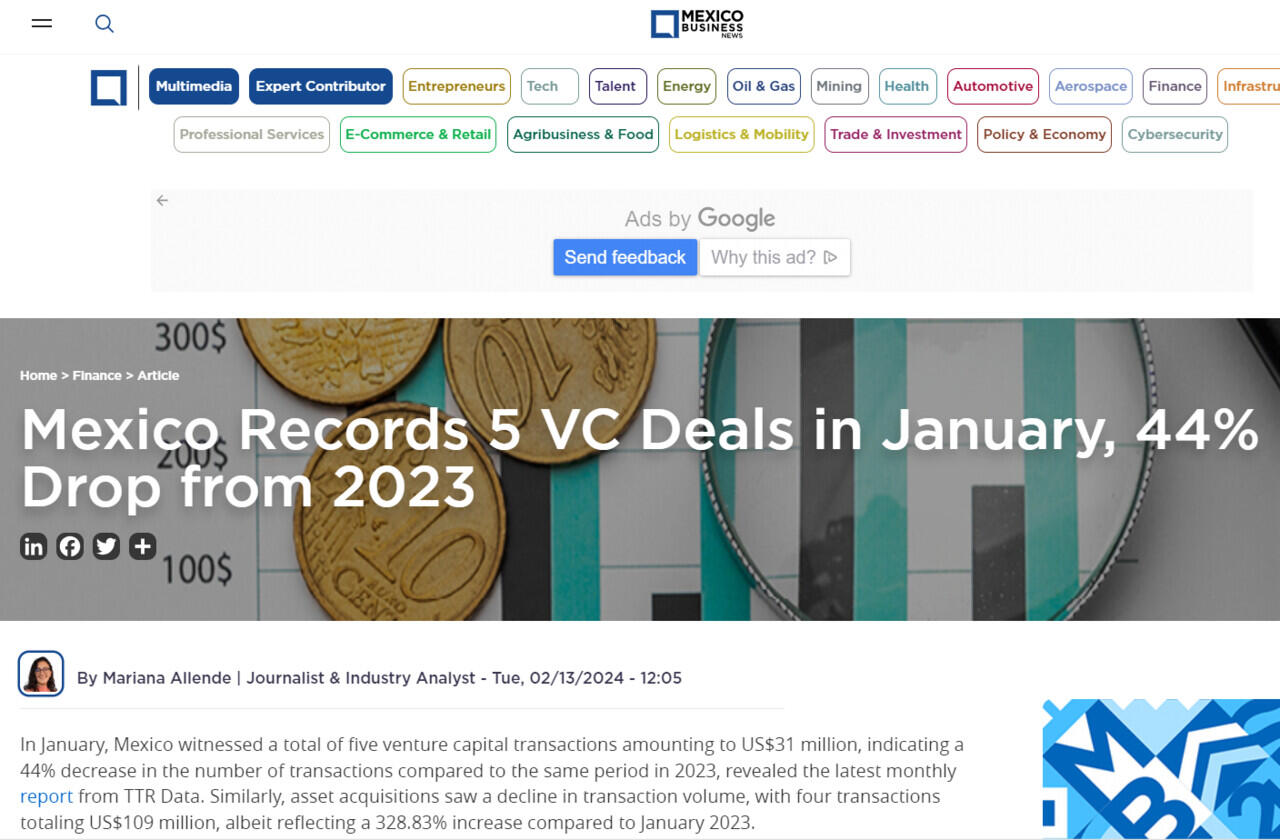 Mexico Records 5 VC Deals in January, 44% Drop from 2023