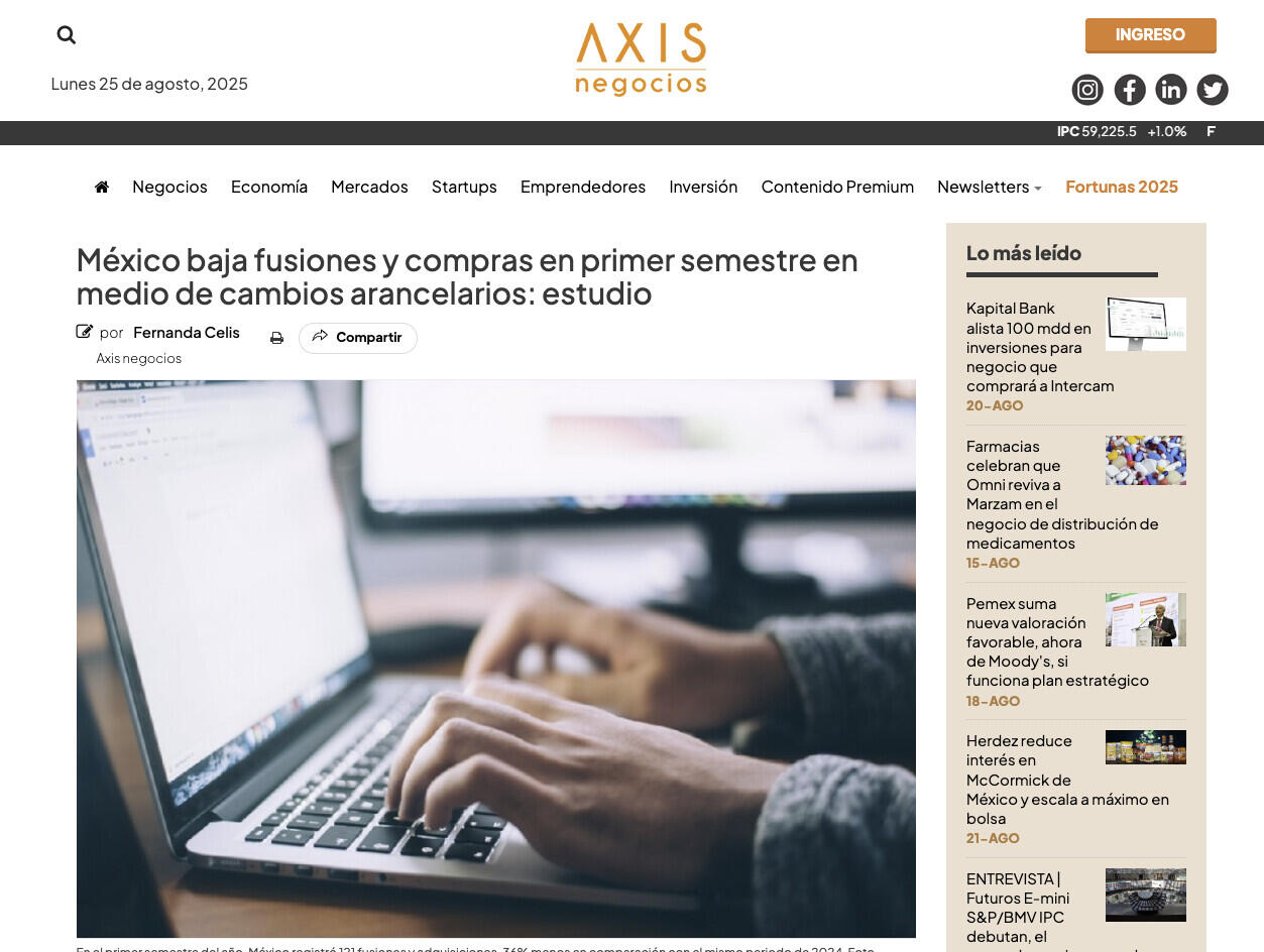 En la primera mitad del año, México registró 121 fusiones y adquisiciones, lo que significó una disminución de 36% en comparación con el mismo periodo de 2024, en medio de un panorama de incertidumbre especialmente por los cambios en las políticas comerciales de su principal socio, Estados Unidos.