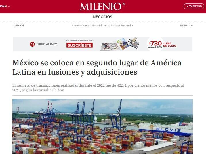 México se encuentra en el segundo lugar de Latinoamérica en fusiones y adquisiciones con 422 transacciones, lo que significó un alza de 1 por ciento y un valor del capital invertido por 16 mil 036 millones de dólares.