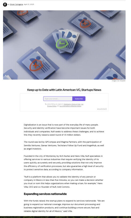 “Nufi is a platform that allows you to validate the identity of any person or company in Mexico in less than five minutes, so you can make a decision whether you trust or nom this helps organizations when making a loan, for example,” Hans Villa, CEO and co-founder of Nufi, told Contxto.