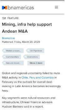 “It is still too early to determine the impact that the coronavirus pandemic will have on deal-making in Latin America, but the ensuing currency depreciation across the region will surely push valuations lower and could result in some sellers choosing not to sell,” Carlos Martínez, senior Latin America correspondent at research company Mergermarket, told BNamericas earlier in the week.