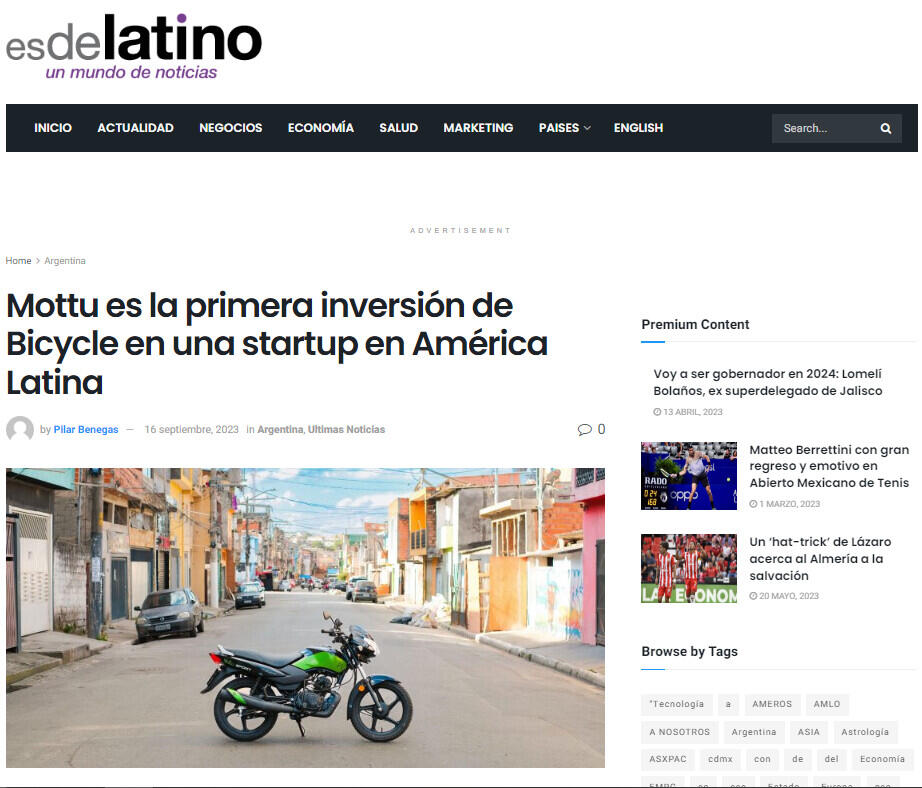 Mottu es la primera inversión de Bicycle en una startup en América Latina