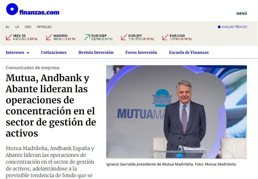 Mutua Madrileña, Andbank España y Abante lideran las operaciones de concentración en el sector de gestión de activos, adelantándose a la previsible tendencia de fondo que se mantendrá en un momento de incertidumbre económica a raíz de la crisis del coronavirus.