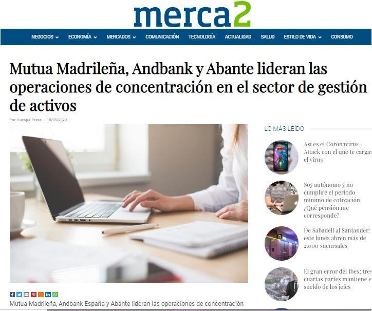 Mutua Madrileña, Andbank España y Abante lideran las operaciones de concentración en el sector de gestión de activos, adelantándose a la previsible tendencia de fondo que se mantendrá en un momento de incertidumbre económica a raíz de la crisis del coronavirus.