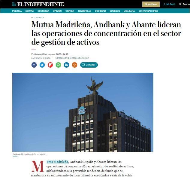Mutua Madrileña, Andbank España y Abante lideran las operaciones de concentración en el sector de gestión de activos, adelantándose a la previsible tendencia de fondo que se mantendrá en un momento de incertidumbre económica a raíz de la crisis del coronavirus.