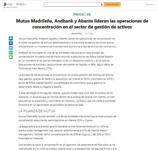 La entrada Mutua Madrileña, Andbank y Abante lideran las operaciones de concentración en el sector de gestión de activos aparece primero en Merca2.es.