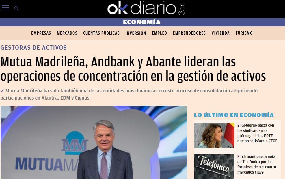 Mutua Madrileña, Andbank y Abante lideran las operaciones de concentración en la gestión de activos