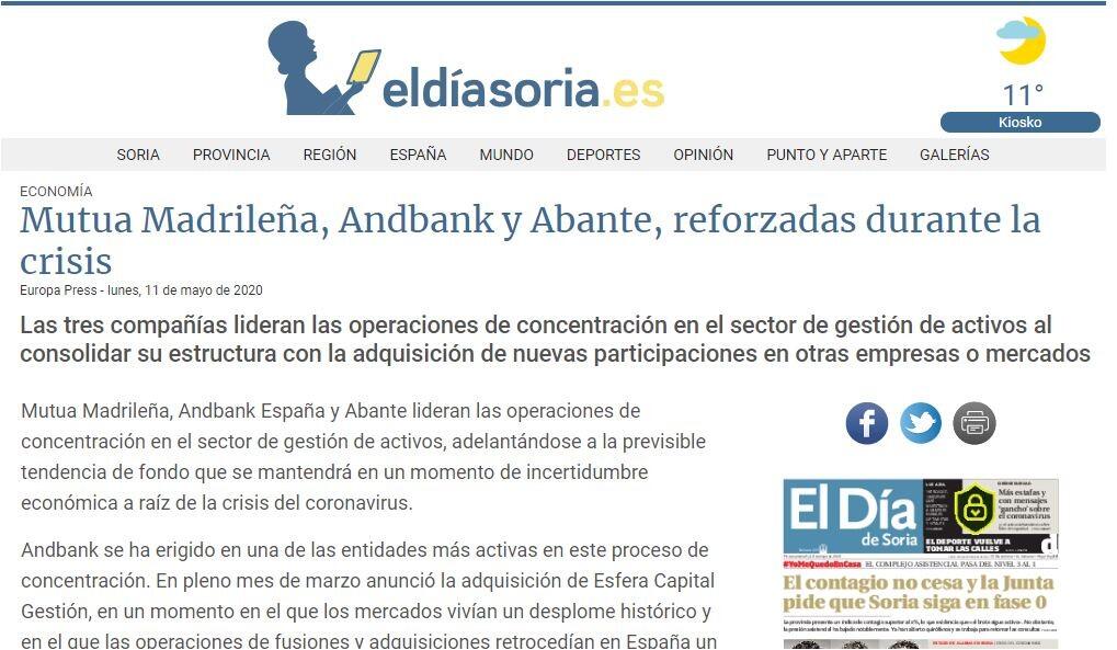 Andbank se ha erigido en una de las entidades más activas en este proceso de concentración. En pleno mes de marzo anunció la adquisición de Esfera Capital Gestión, en un momento en el que los mercados vivían un desplome histórico y en el que las operaciones de fusiones y adquisiciones retrocedían en España un 90%, según datos de Transitional Track Record (TTR).