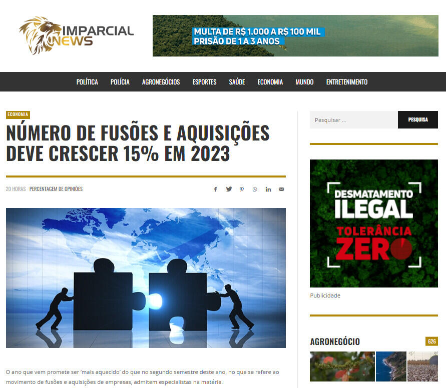 NÚMERO DE FUSÕES E AQUISIÇÕES DEVE CRESCER 15% EM 2023