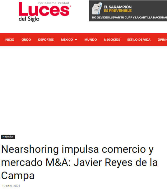México está viviendo una transformación en el comercio internacional, con el fenómeno del nearshoring emergiendo como un catalizador, y da un impulso al mercado de fusiones y adquisiciones (M&A), destaca Javier Reyes de la Campa.