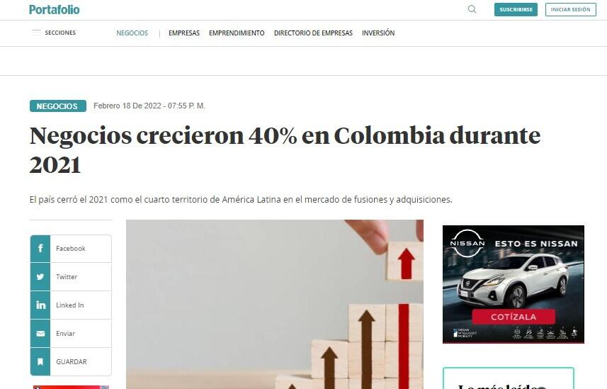 Negocios crecieron 40% en Colombia durante 2021