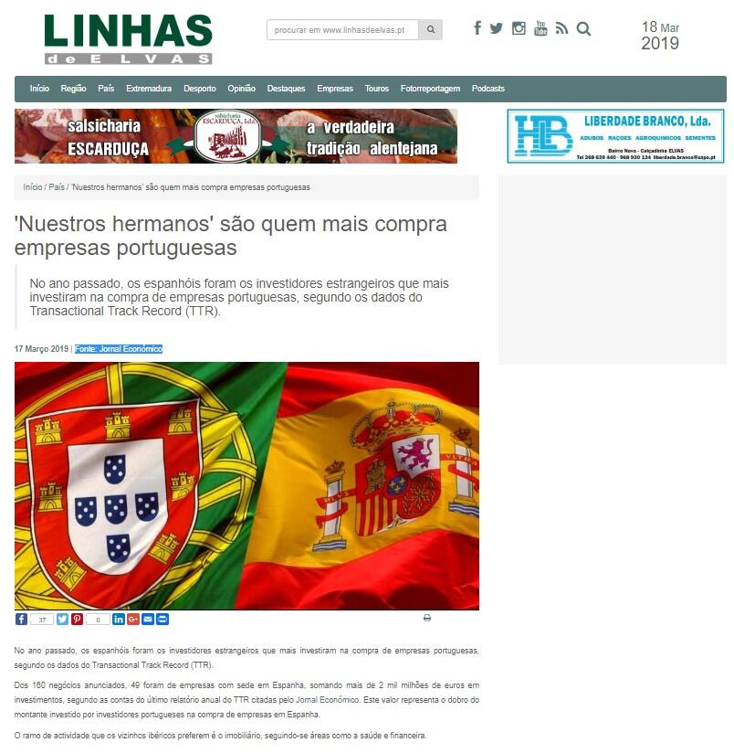 Dos 160 negócios anunciados, 49 foram de empresas com sede em Espanha, somando mais de 2 mil milhões de euros em investimentos, segundo as contas do último relatório anual do TTR citadas pelo Jornal Económico. Este valor representa o dobro do montante investido por investidores portugueses na compra de empresas em Espanha.