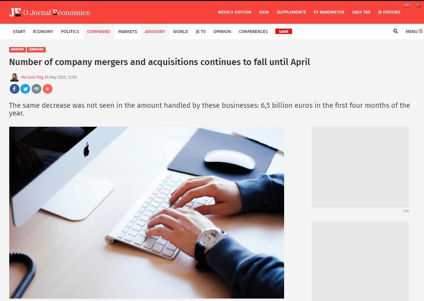 The number of mergers and acquisitions of companies in Portugal fell in the first four months of the year, to 109 operations, less than 14% compared to the same period in 2019. The transactional market retreated until April in terms of volume, but the same does not happen in the amount handled, these businesses: 6,5 billion euros, plus 87%.