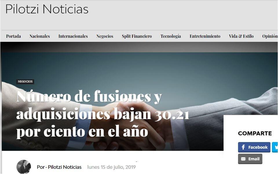 En la primera mitad del año se han registrado en México 134 operaciones de fusiones o adquisiciones, de las cuales 52 suman un importe no confidencial de 10 mil 209 millones de dólares.