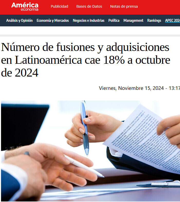 Número de fusiones y adquisiciones en Latinoamérica cae 18% a octubre de 2024