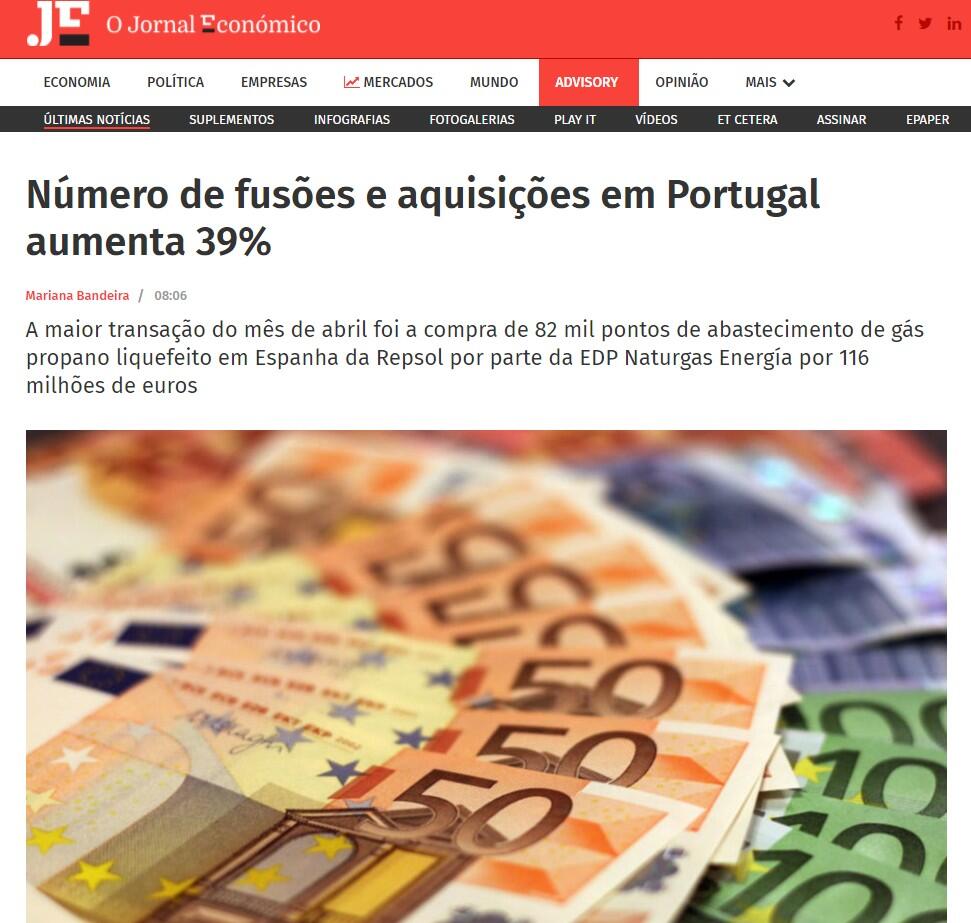 O mercado de fusões e aquisições de Portugal registou 25 transações no mês de abril, segundo o mais recente relatório do Transactional Track Record (TTR). Os dados mostram um aumento de aproximadamente 39% face ao período homólogo, sendo que a maior transação de abril foi a compra de 82 mil pontos de abastecimento de gás propano liquefeito em Espanha da Repsol por parte da EDP Naturgas Energía por 116 milhões de euros.