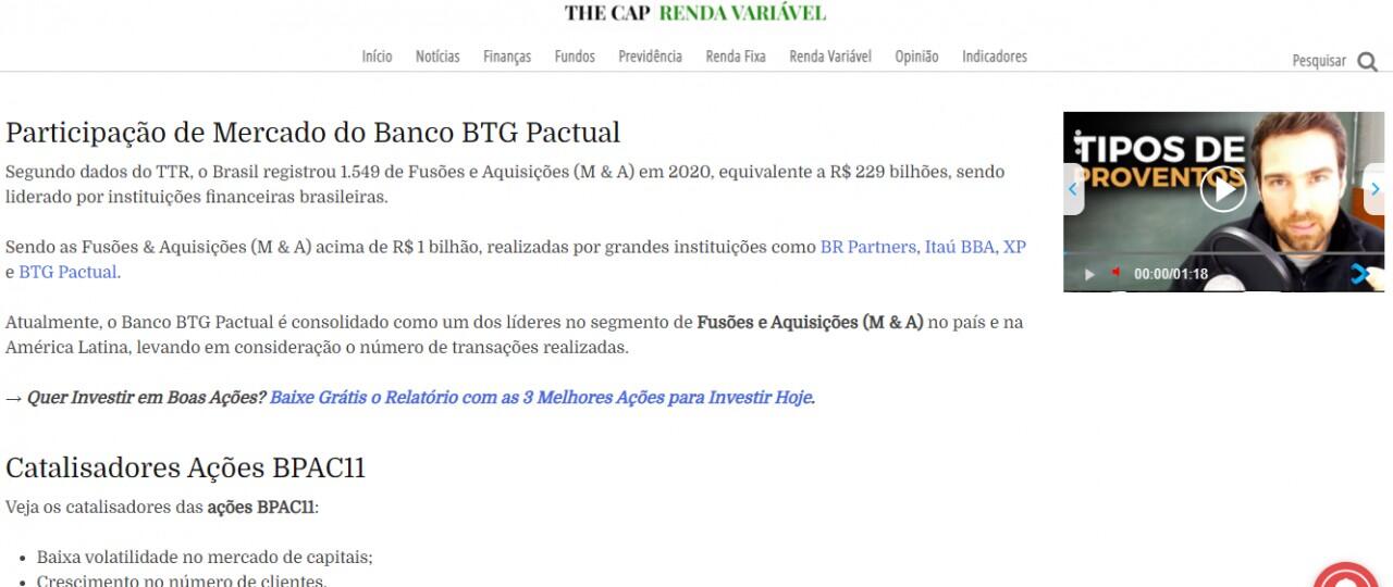 Atualmente, o Banco BTG Pactual é consolidado como um dos líderes no segmento de Fusões e Aquisições (M & A) no país e na América Latina, levando em consideração o número de transações realizadas.