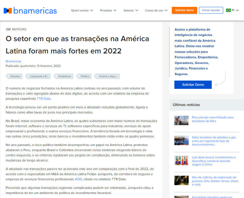 O setor em que as transações na América Latina foram mais fortes em 2022