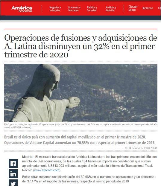 Operaciones de fusiones y adquisiciones de A. Latina disminuyen un 32% en el primer trimestre de 2020