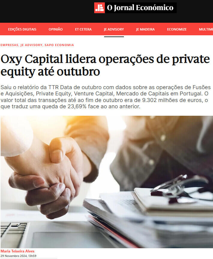 Segue-se a Oxy Capital Portugal com duas operações de desinvestimento, do Fundo Aquarius, também sem valor.