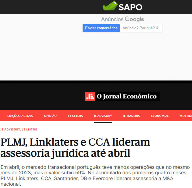 PLMJ, Linklaters e CCA lideram assessoria jurídica até abril