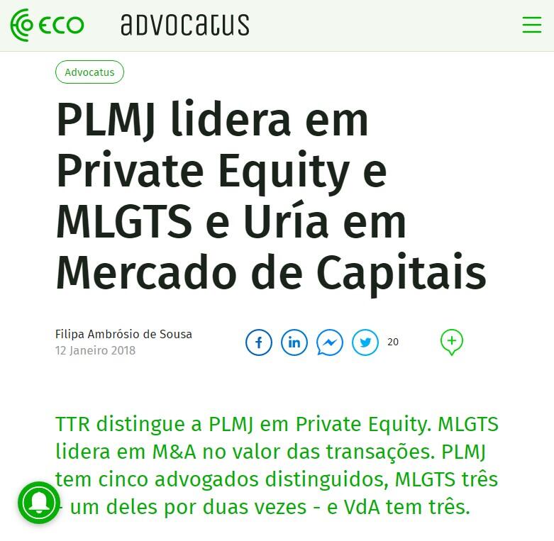 PLMJ lidera em Private Equity e MLGTS e Uría em Mercado de Capitais
