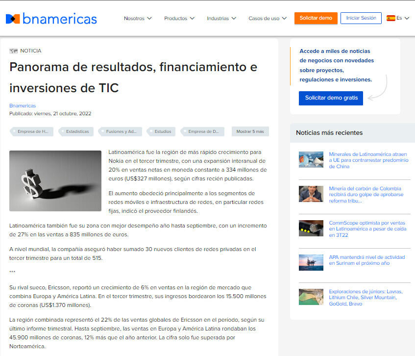 Ericsson no desglosa los resultados de América Latina de manera específica.