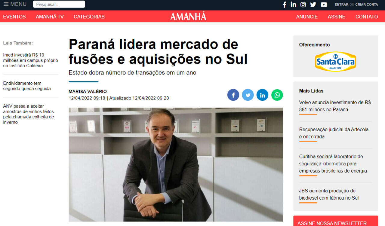 "O volume de M&A reflete o bom desempenho relativo da economia do Sul e do Paraná, o que atrai investimentos de empresas nacionais e estrangeiras. Mas há também o movimento de empresas do Sul fazendo aquisições para consolidar e expandir suas posições regionais", explica João Caetano Magalhães, diretor da Redirection International, empresa especializada em Fusões & Aquisições.