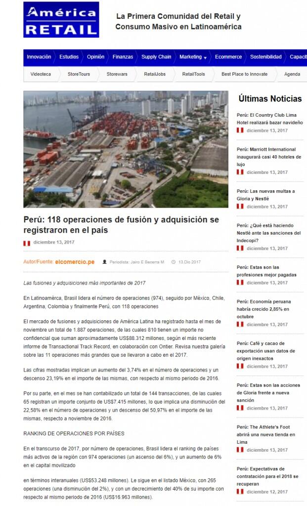 Perú: 118 operaciones de fusión y adquisición se registraron en el país
