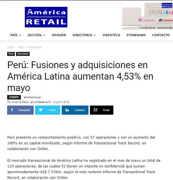 Perú: Fusiones y adquisiciones en América Latina aumentan 4,53% en mayo