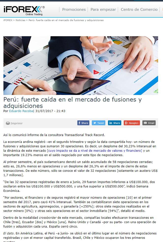 Perú: fuerte caída en el mercado de fusiones y adquisiciones