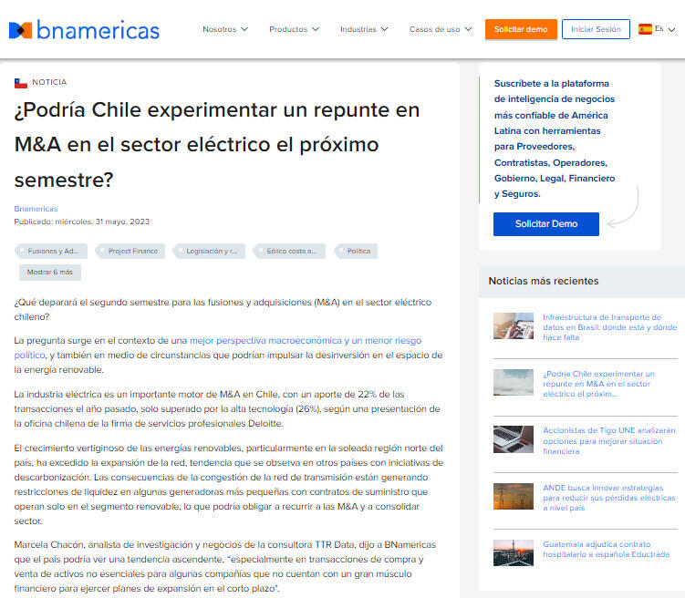 ¿Podría Chile experimentar un repunte en M&A en el sector eléctrico el próximo semestre?