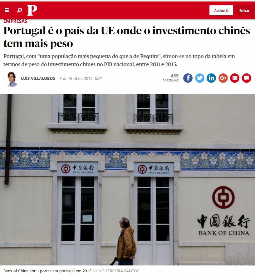 Portugal, com “uma população mais pequena do que a de Pequim”, situou-se no topo da tabela em termos de peso do investimento chinês no produto interno bruto nacional, entre 2011 e 2015.