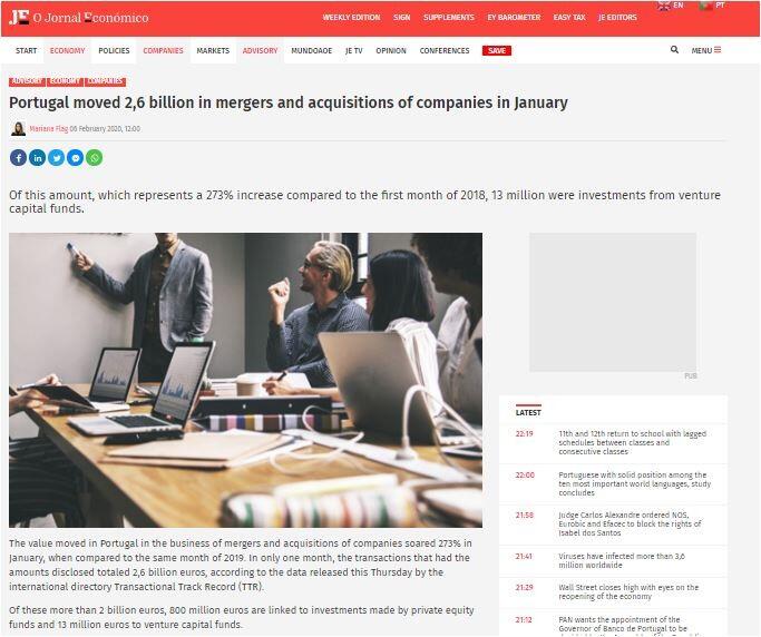 Portugal moved 2,6 billion in mergers and acquisitions of companies in January