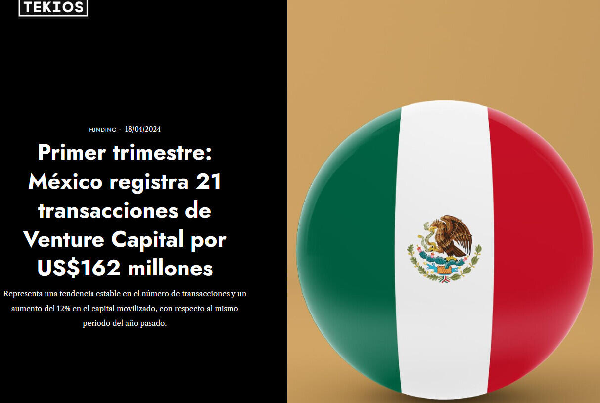 De acuerdo con el informe trimestral de TTR Data (www.ttrdata.com), en los tres primeros meses de 2024, México ha registrado 21 transacciones de Venture Capital valoradas en US$162 millones, lo que representa una tendencia estable en el número de transacciones y un aumento del 12% en el capital movilizado, con respecto al mismo periodo del año pasado.