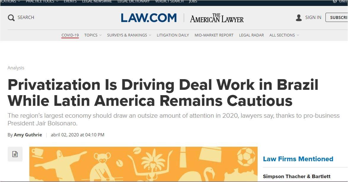 More information in: https://www.law.com/americanlawyer/2020/04/02/privatization-is-driving-deal-work-in-brazil-while-latin-america-remains-cautious/?slreturn=20200529203443