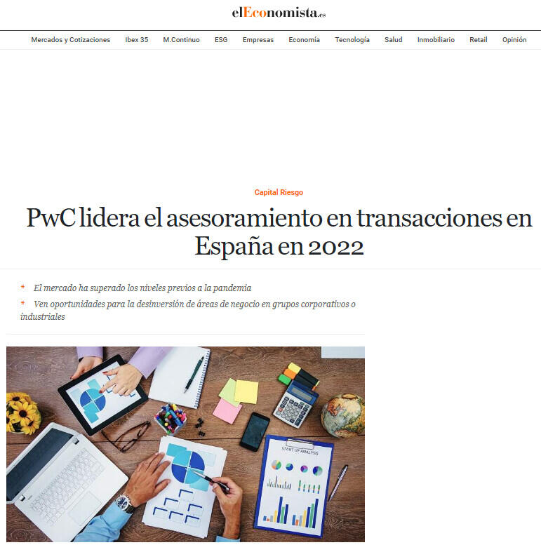 PwC lidera el asesoramiento en transacciones en Espaņa en 2022