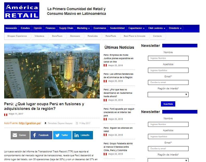 ¿Qué lugar ocupa Perú en fusiones y adquisiciones de la región?