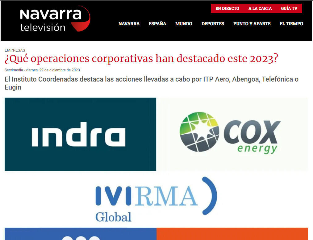 ITP Aero, Abengoa, Telefónica o Eugin están entre las operaciones corporativas más destacadas de 2023, según el Instituto Coordenadas de Gobernanza y Economía Aplicada.