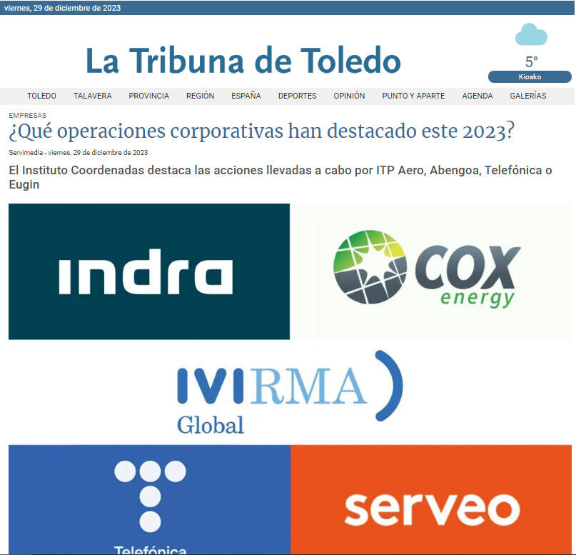 ITP Aero, Abengoa, Telefónica o Eugin están entre las operaciones corporativas más destacadas de 2023, según el Instituto Coordenadas de Gobernanza y Economía Aplicada.