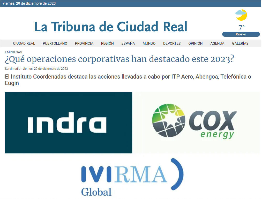 ITP Aero, Abengoa, Telefónica o Eugin están entre las operaciones corporativas más destacadas de 2023, según el Instituto Coordenadas de Gobernanza y Economía Aplicada.