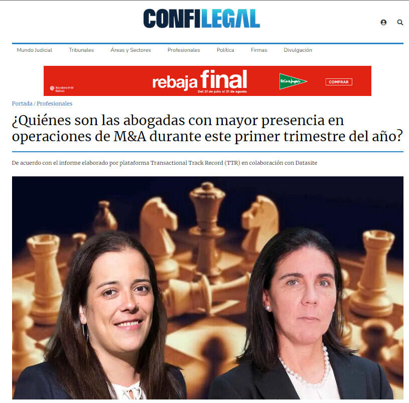 Pues depende de por donde se aborde el tema. Si es por el ránking de asesoras de asesoras más activas, por capital movilizado en la categoría de «Partners & Counsels», en el mercado español de M&A (fusiones y adquisiciones) durante el primer trimestre de este año, los nombres son muy claros Teresa Méndez, «of counsel» de Allen & Overy y Mónica Martín de Vidales, socia del área mercantil de Garrigues.
