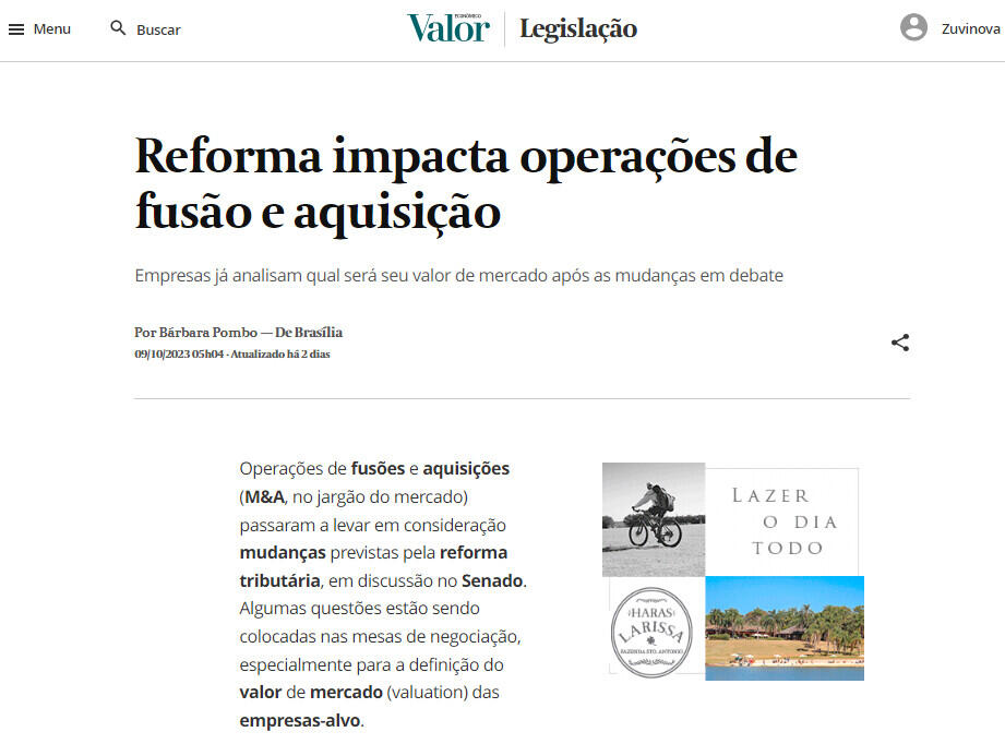 Operações de fusões e aquisições (M&A, no jargão do mercado) passaram a levar em consideração mudanças previstas pela reforma tributária, em discussão no Senado. Algumas questões estão sendo colocadas nas mesas de negociação, especialmente para a definição do valor de mercado (valuation) das empresas-alvo.