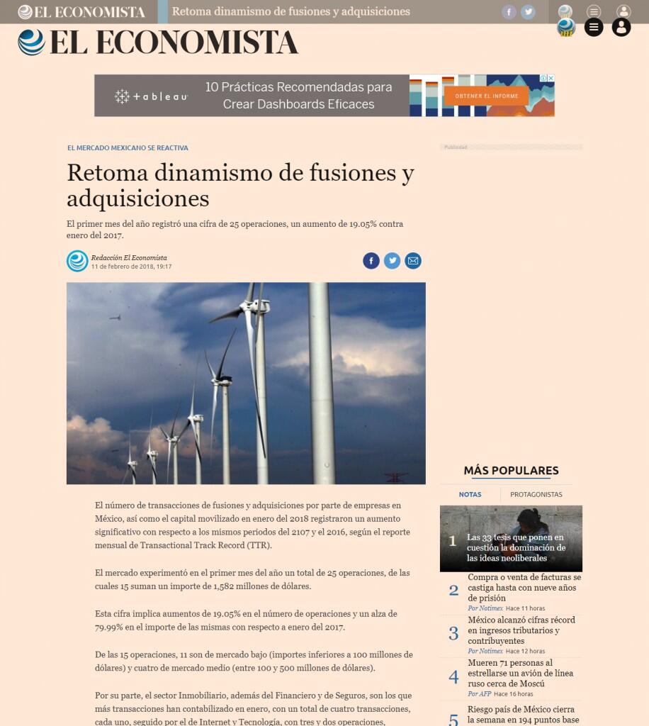 El número de transacciones de fusiones y adquisiciones por parte de empresas en México, así como el capital movilizado en enero del 2018 registraron un aumento significativo con respecto a los mismos periodos del 2107 y el 2016, según el reporte mensual de Transactional Track Record (TTR).