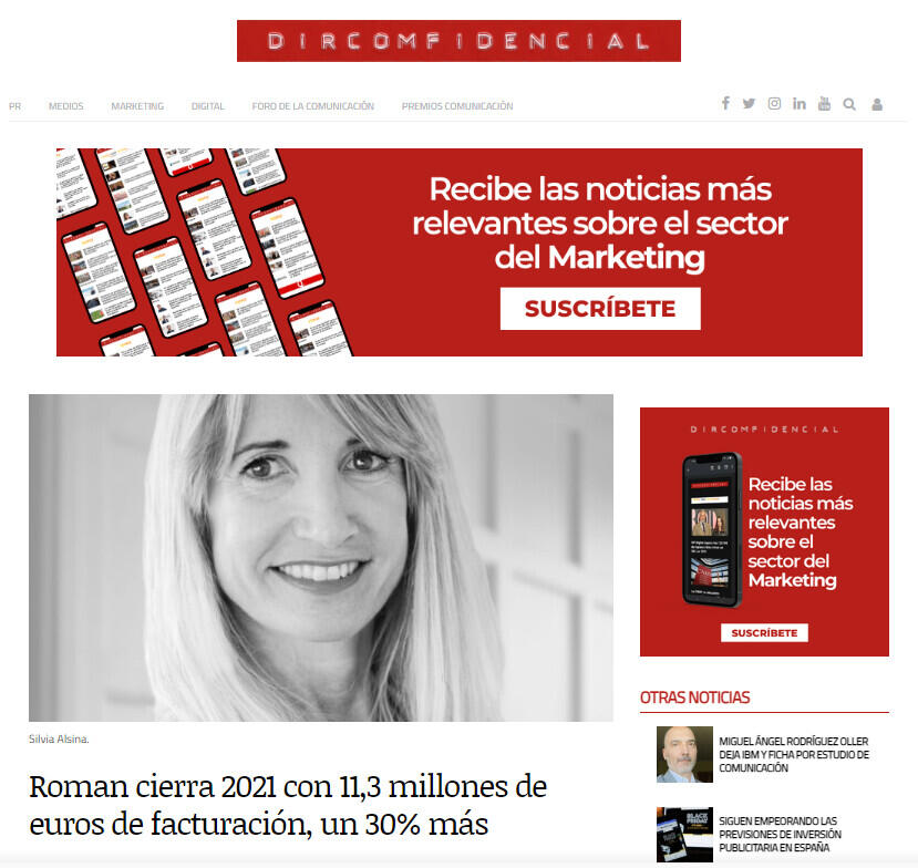 Silvia Alsina, CEO de Roman, asegura que “el 2021 ha sido un ejercicio excepcional y un año de grandes retos y oportunidades. Hemos experimentado un crecimiento récord de los ingresos a la vez que hemos dado pasos significativos tanto en nuestra estrategia a largo plazo como en la senda de crecimiento sostenible y rentable, motor de nuestra compañía. Crecer orgánicamente un 30% demuestra que Roman tiene la energía y el talento para continuar generando impacto y valor a través del cumplimiento del plan estratégico, eje vertebrador del proceso de transformación desplegado en la nueva etapa de la compañía”.